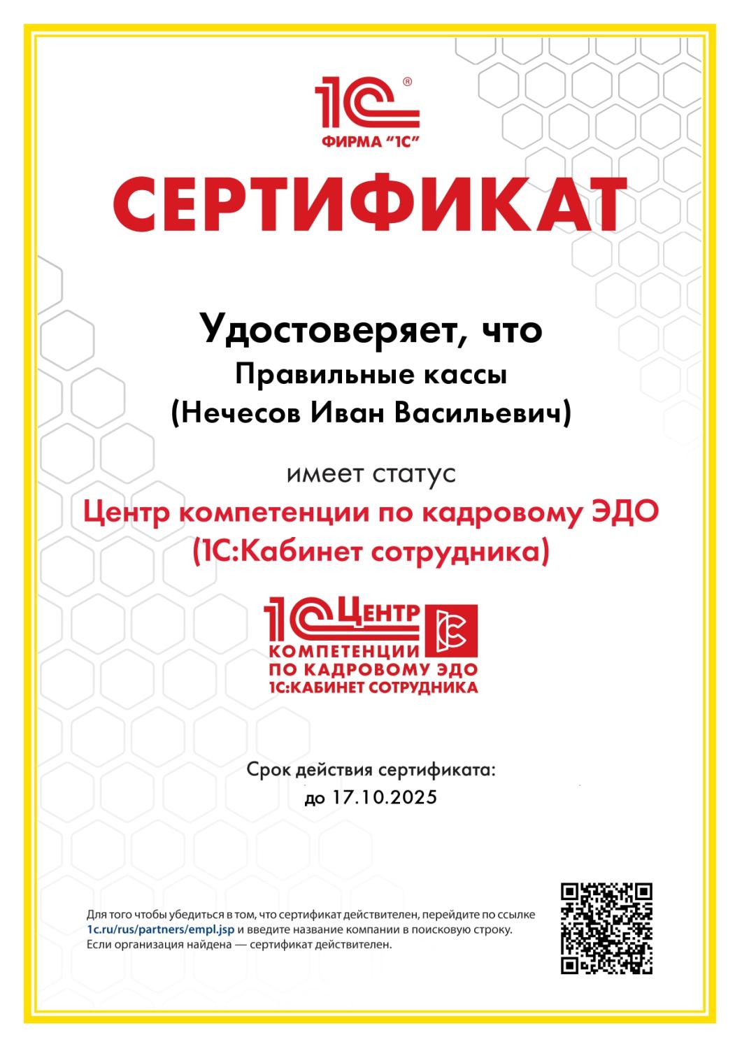 Свидетельство о прохождении курса «Конфигурирование подсистем расчета зарплаты и управления персоналом»