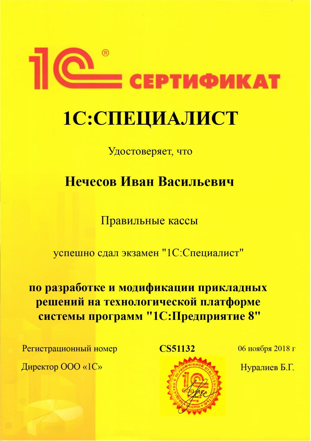 1С:Специалист по разработке и модификации прикладных решений на Платформе 1С 8.х